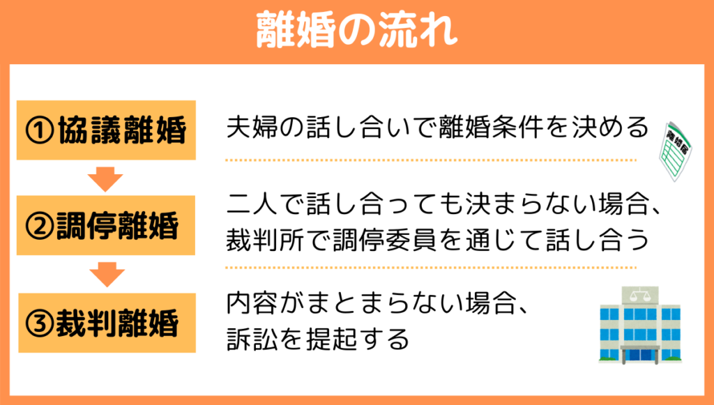 離婚の流れはおおまかに3つに分けられ、