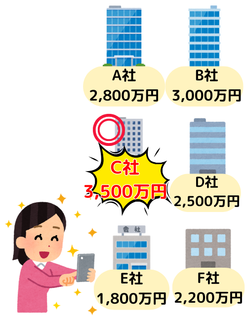 | C社 | 3,500万円 |