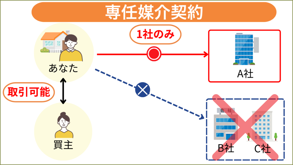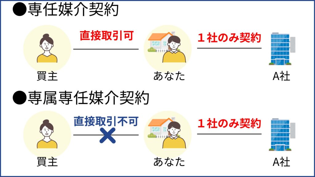 専属専任媒介契約になると、買主との直接取引も禁止され、さらに制約が強くなります。