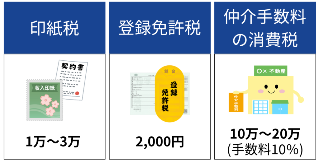 仲介手数料などの消費税がかかります。